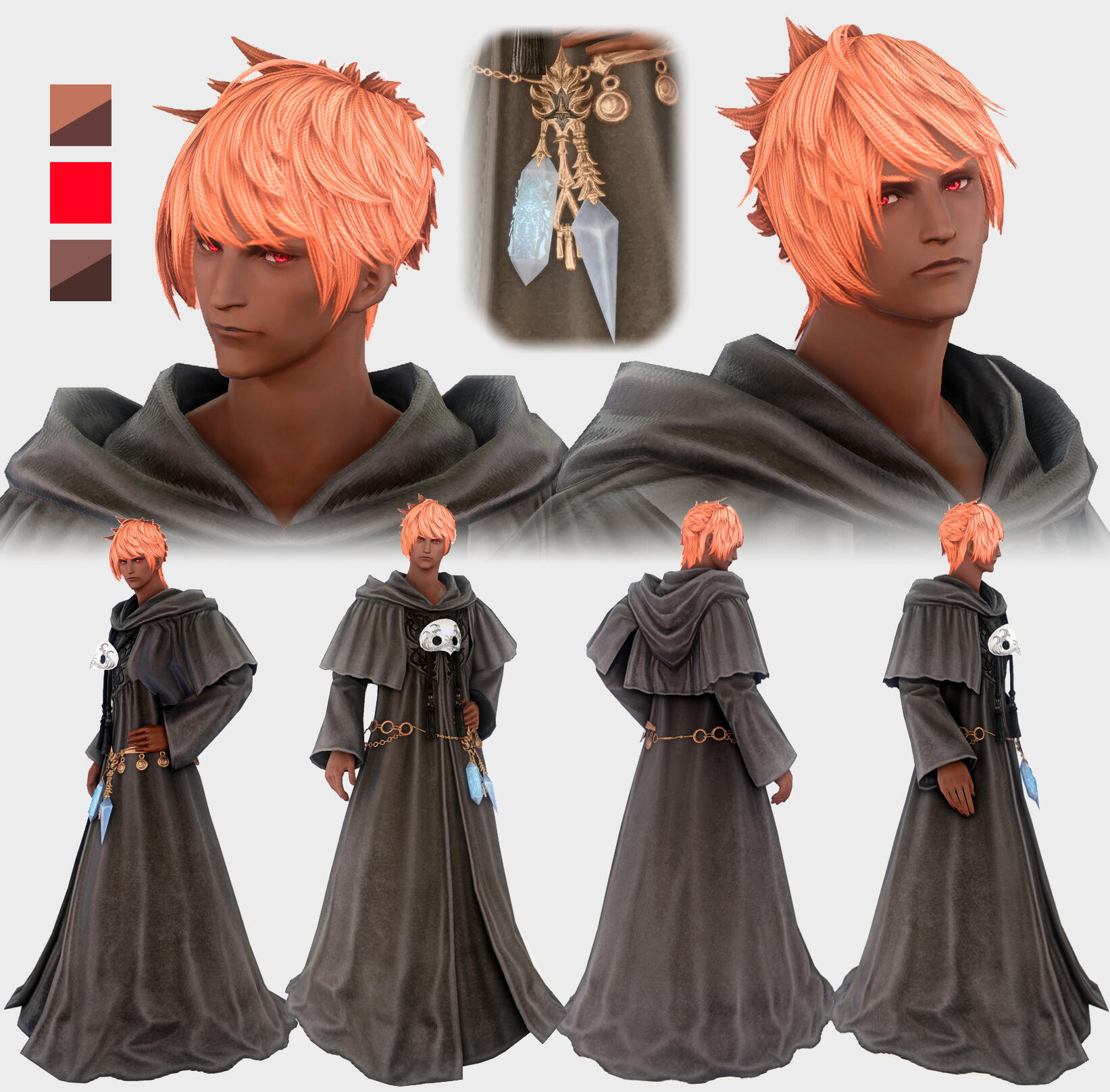 Description: Erichthonios is a tall, dark-skinned Ancient with salmon-colored hair, and red eyes. He wears the usual sophist robe that all Ancients wear but he wears a belt along his waist that has two crystals on it, one with the symbol of Mateus.