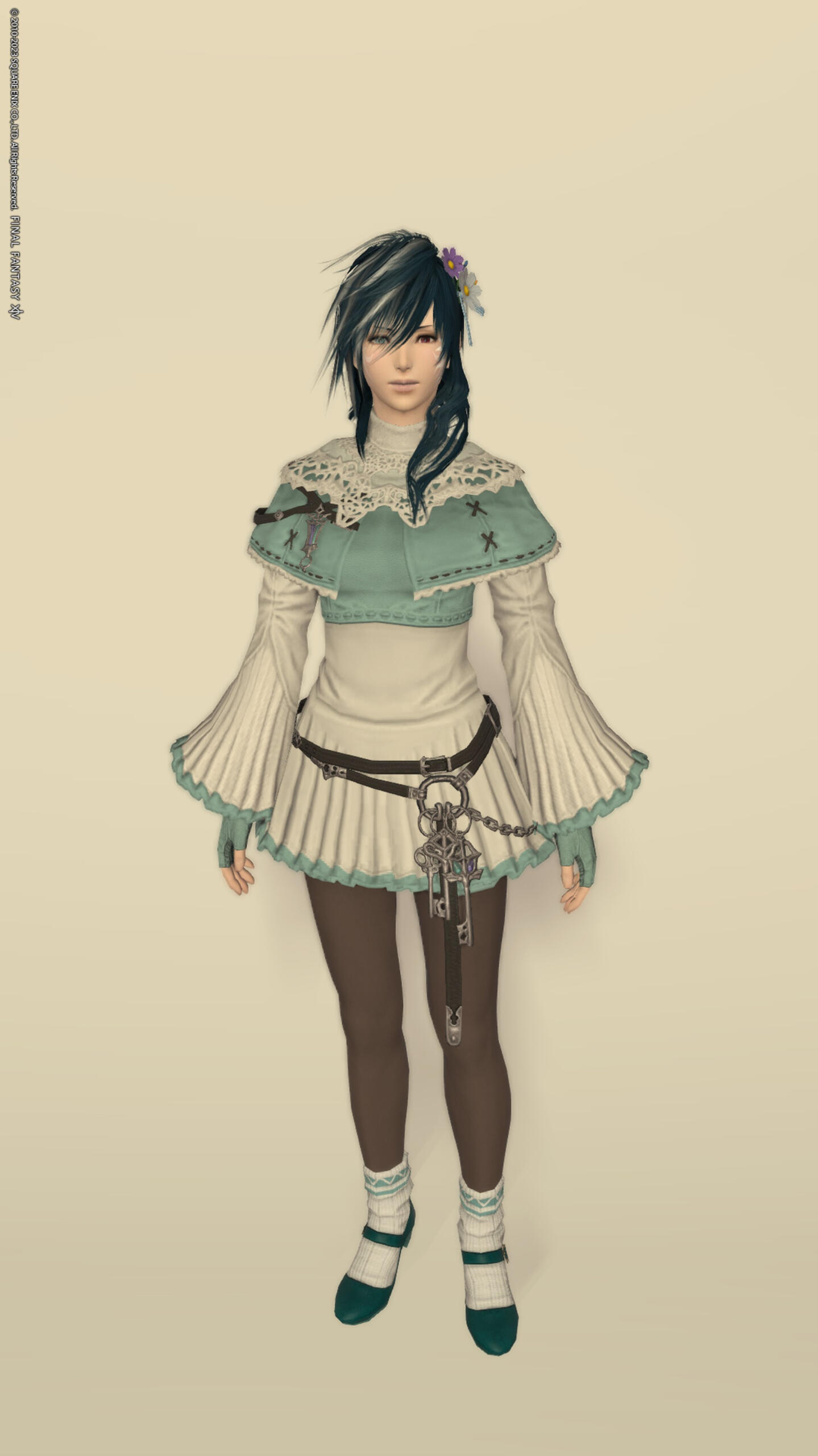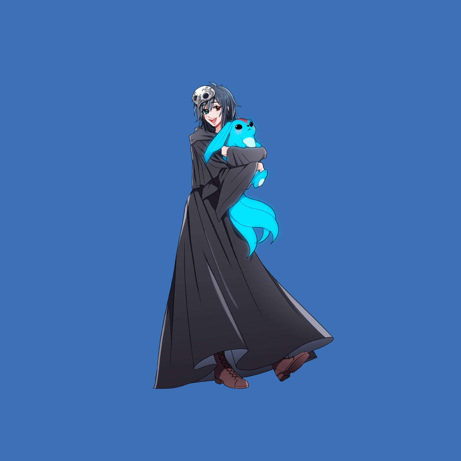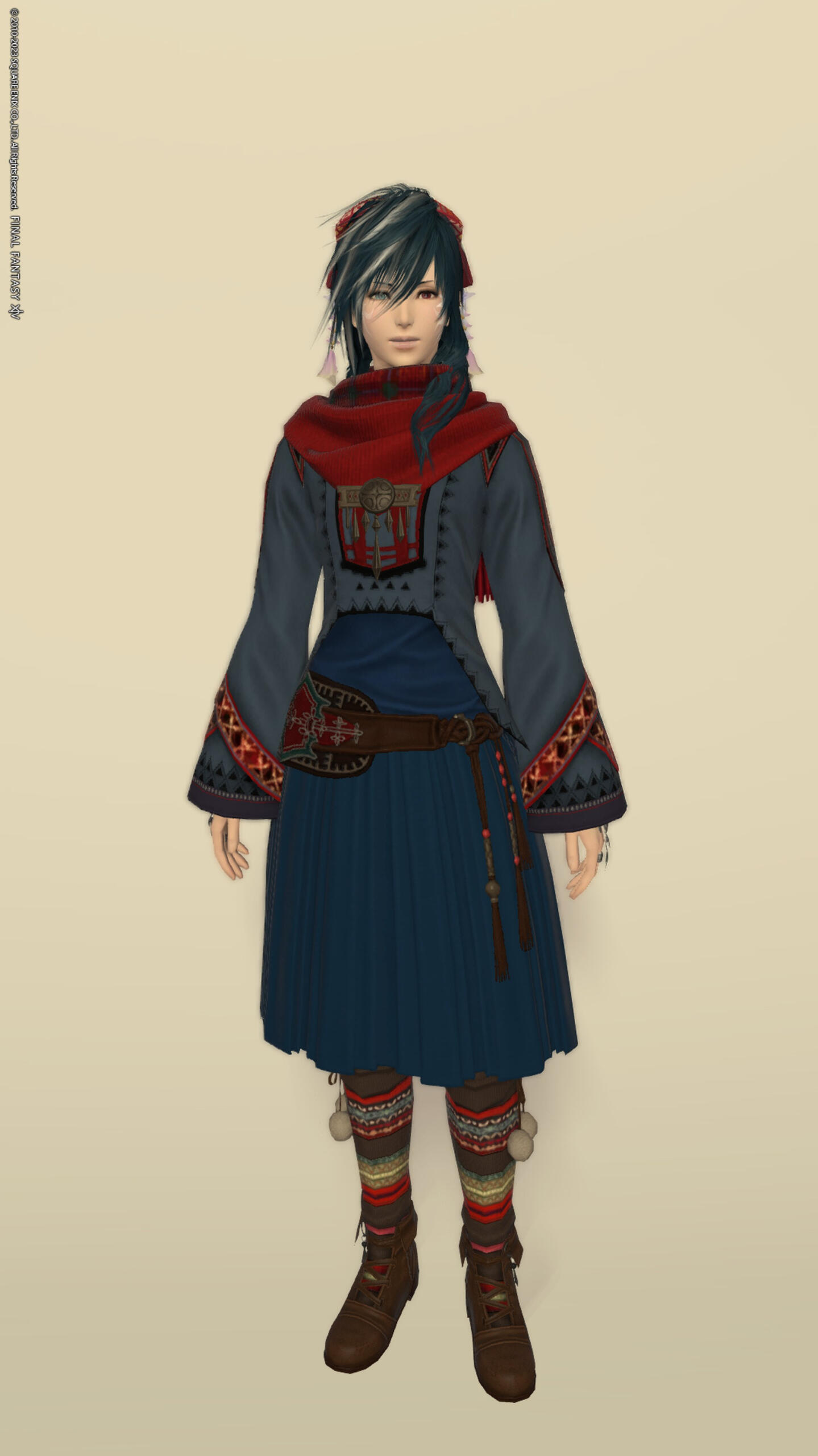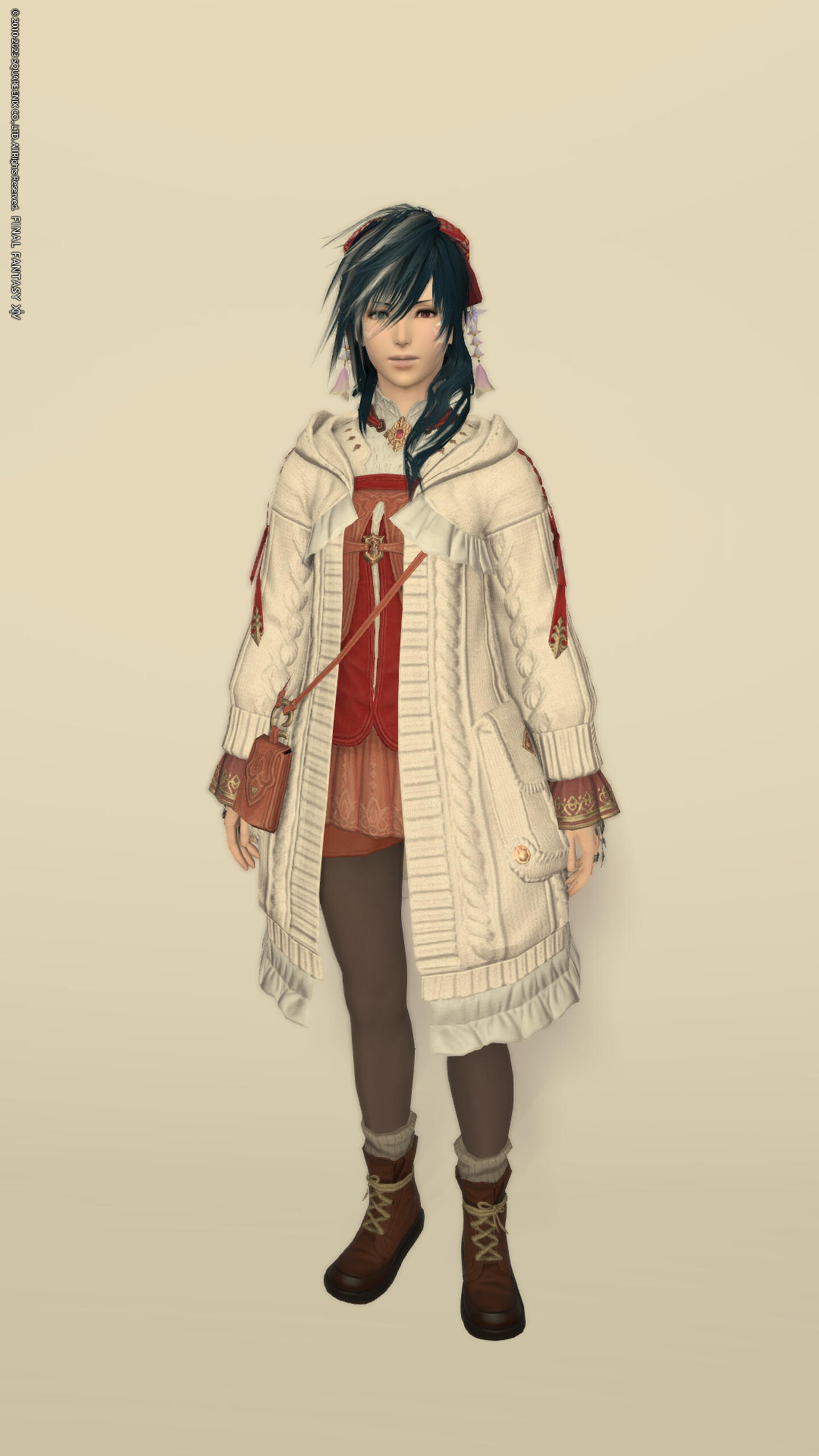 Description: Taimu is a very petite Midlander Hyur with peachy skin, ruby-red (R) and sapphire-blue (L) eyes and blue-grey hair with streaks of white. She often dons a similar blue-grey colored Convoker's robe and dark gloves with a pair of Ultima's Horns. Lastly white stockings and a pair of Eastern Maiden's boots finishes her look.