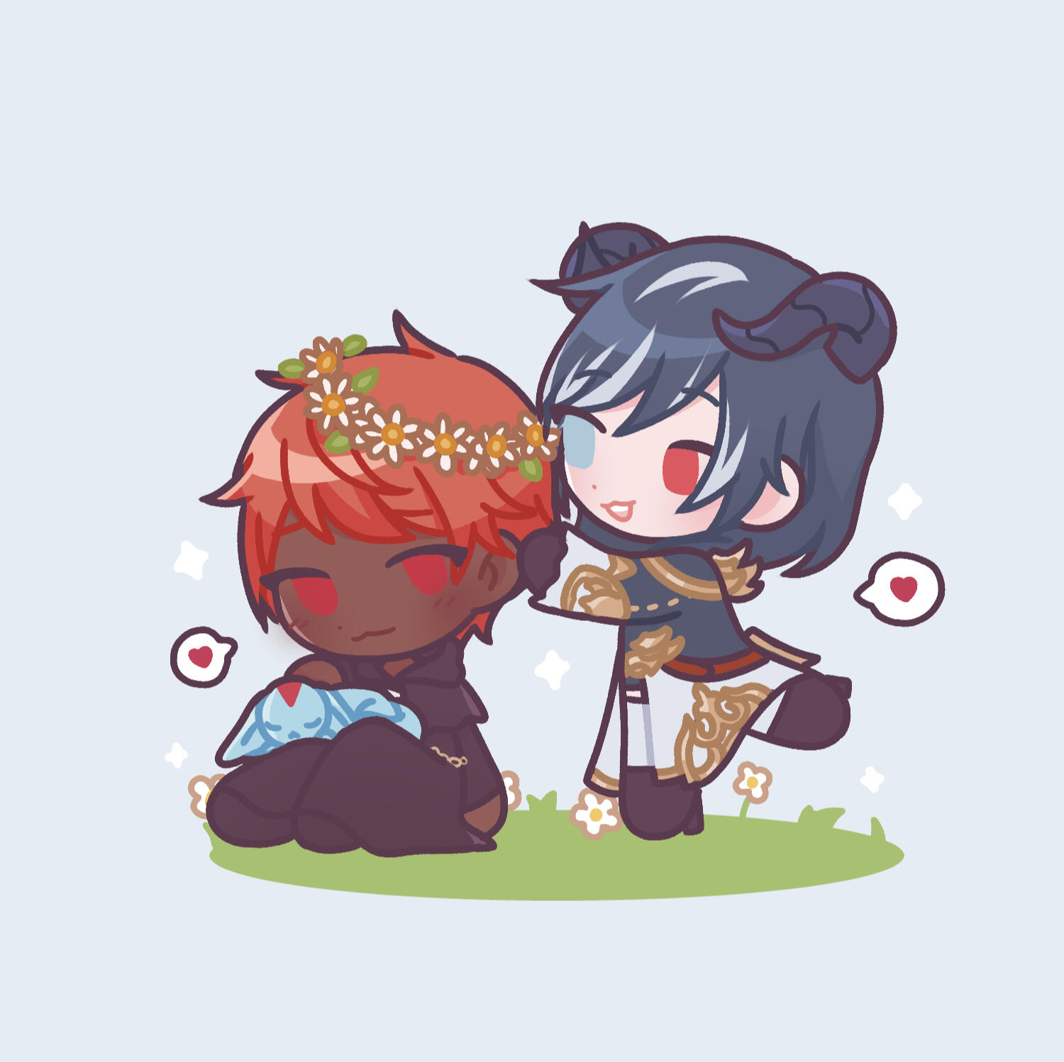 Despite both being inexperienced lovers, Erich and Taimu have taken steady and clumsy steps into this blooming relationship together; focusing on communication, thoughts, and feelings for one another. Most canonical time spent together occur while Taimu is physically able to visit the past of Elpis and Pandemonium during the age of The Unsundered.
